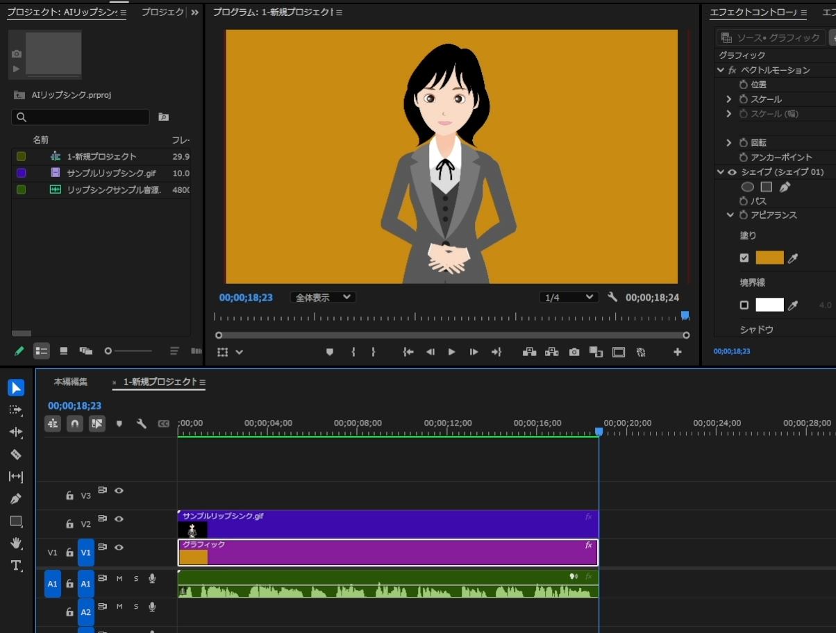 - gif画像(アニメーションgif)をそのまま動画編集ソフトに配置するだけ。音声ファイルと同期してキャラクターがしゃべりだします。